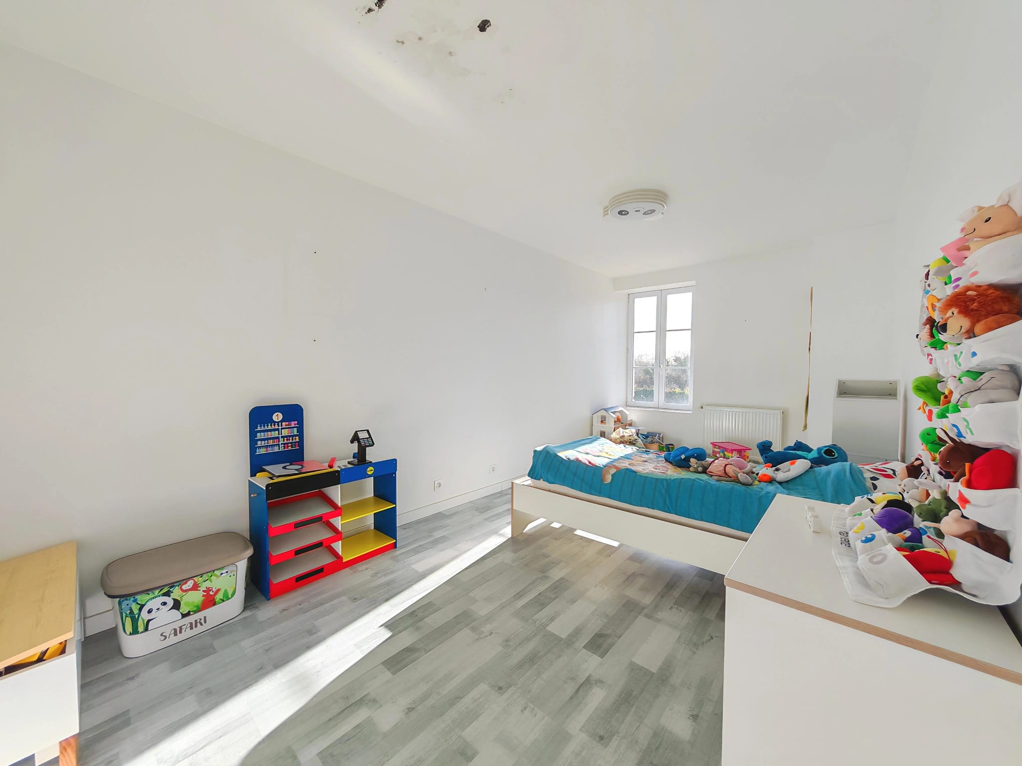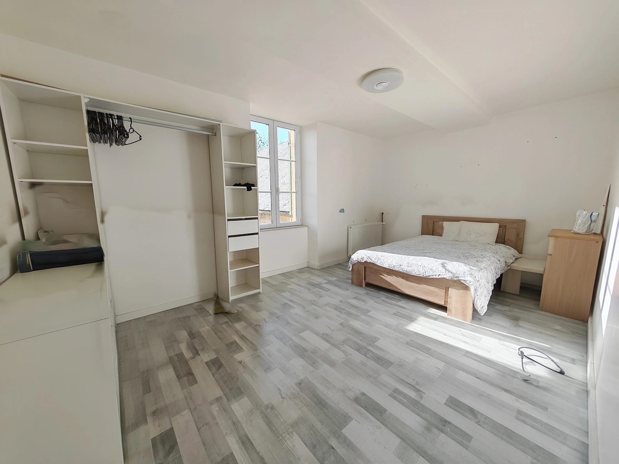 A l’étage, vous découvrirez trois grandes chambres d’environ 15 m², une salle d’eau ainsi qu’un grenier de 30 m², idéal pour du rangement ou pour aménager.