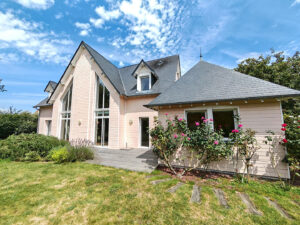 Dans un environnement calme et verdoyant du secteur de la communauté de commune de Thue et Mue à 2 km de Bretteville l’Orgueilleuse, grande maison d’architecte de 2005 à ossature bois de plus de 180 m² habitables implantée sur plus de 1000 m² de terrain .
