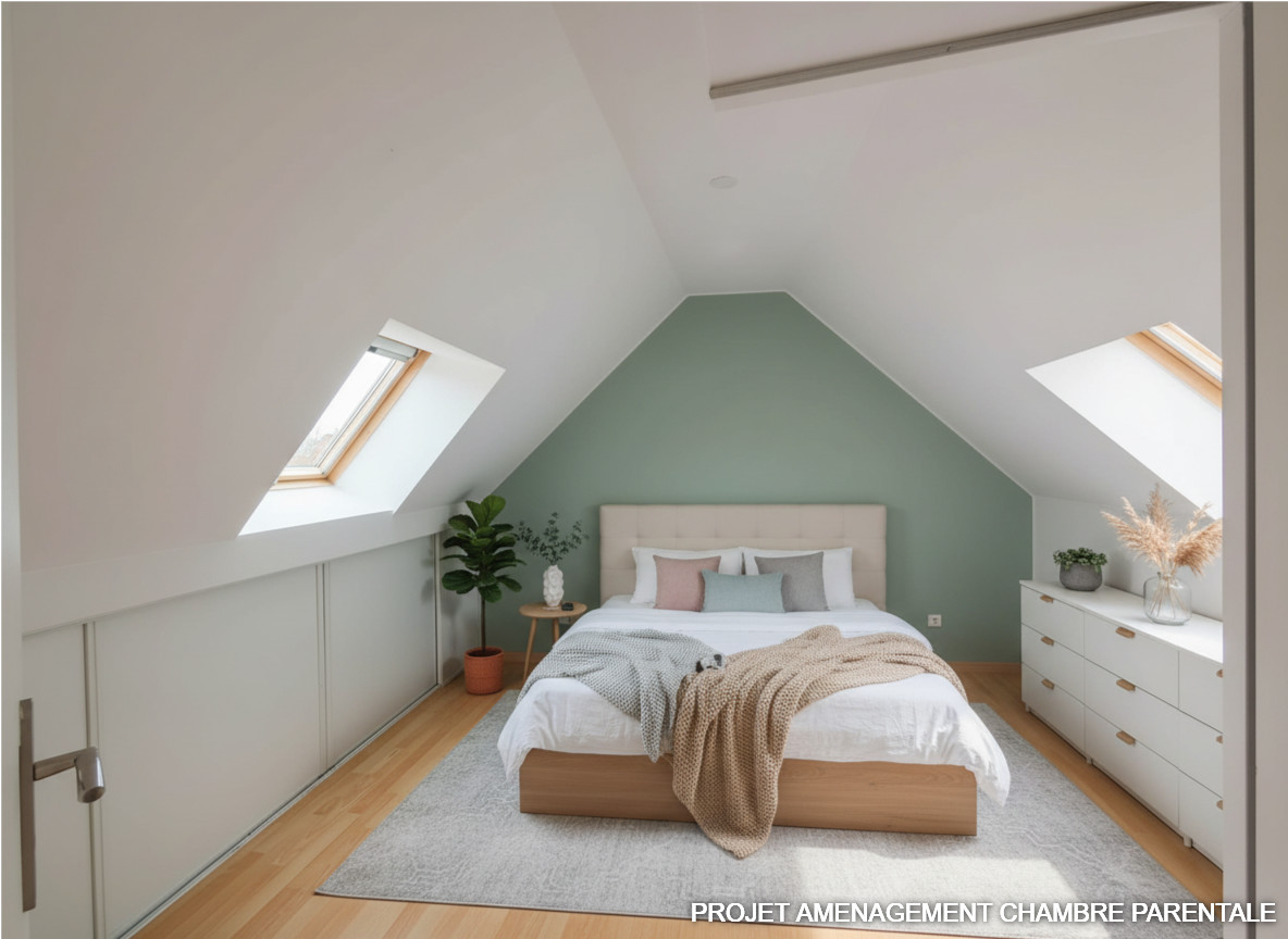 A l’étage, un palier dessert deux chambres confortables, une salle de douche moderne et un WC indépendant. Le second niveau offre un espace bureau, deux chambres supplémentaires et une seconde salle de douche. Une possibilité d’aménagement permet de réunir les deux chambres pour créer une belle suite parentale.